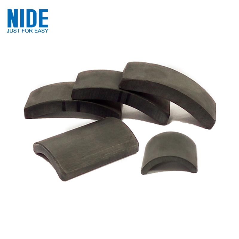 Magnet Joogtada ah ee Arc Ferrite: Waxaa lagu soo saaray habka habka dhoobada. Maqaarku wuu adag yahay waana wax jajaban. Sababtoo ah magnetka ferrite wuxuu leeyahay iska caabin heerkul wanaagsan, qiimo jaban iyo waxqabad dhexdhexaad ah, waxay noqotay magnet joogto ah ee loogu isticmaalka badan yahay.